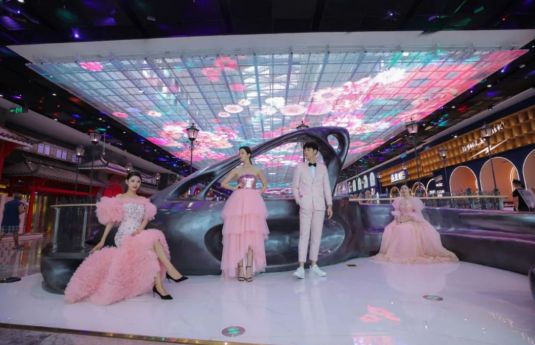 室內(nèi),吊裝在天花頂上的大型LED天幕屏宛如一條色彩艷麗的綢緞、明亮深邃的天空,夜幕降臨,氣勢恢宏,炫彩繽紛的天幕畫面。同時,天幕的互動性強,視覺沖擊力強,音響效果環(huán)繞四周堪比影院效果,可以打造非常好的時尚氛圍感。在戶外,高清亮麗的顯示效果給當?shù)厝巳簬砹苏鸷掣惺埽倥浜弦孕滦蚅ED燈條、燈帶、投影等照明設備,起到亮化、渲染作用,成為城市新地標。